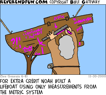 DESCRIPTION: Noah drawing some measurements onto a boat construction CAPTION: FOR EXTRA CREDIT NOAH BUILT A LIFEBOAT USING ONLY MEASUREMENTS FROM THE METRIC SYSTEM